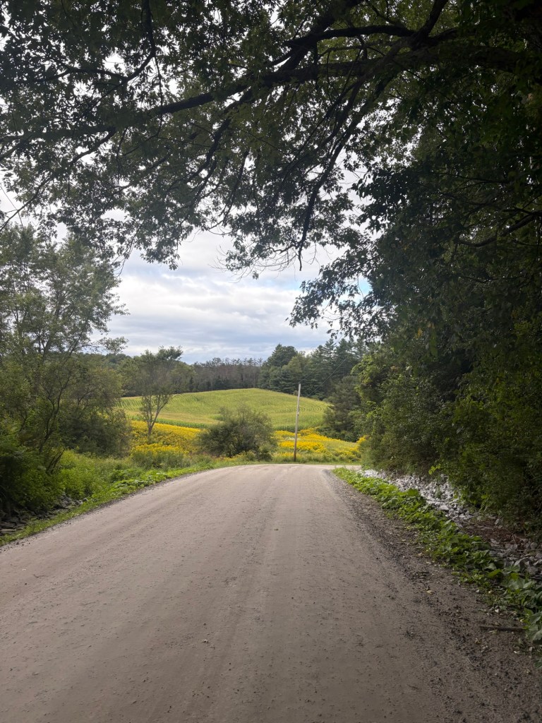 Gravel road Les and Lori were my Warmshowers hosts this night. Les and his dog Carly met me coming up their driveway we parked my bike on the front porch and walked to the garden out back to meet Lori.