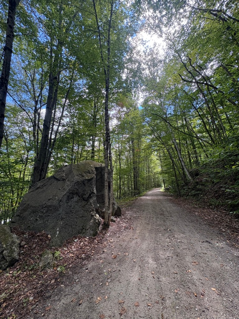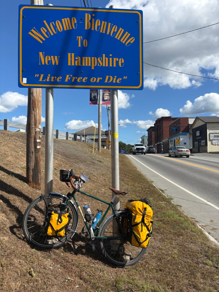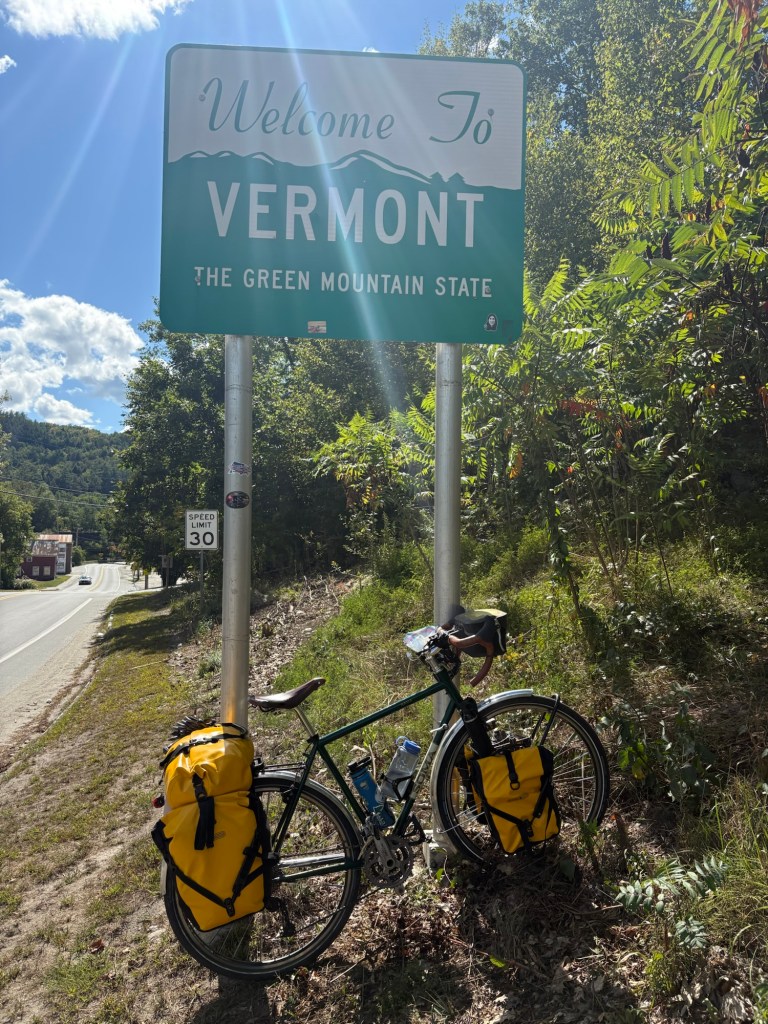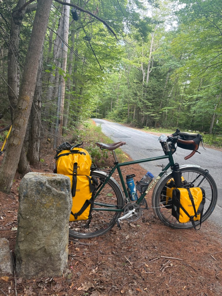 12th State! Only one more left. When I was researching the xnhat, while making my route, I should have been more thorough. I did read on the xnhat website, there were some sections that allowed ATVs. And they did state it was not a good trail for bikes with skinny tires, they recommend tires on bikes should be 32 millimeters or wider. But I discovered on the first section it was going to be rough going for me on a loaded touring bike with 38 millimeter tires trying to cover 50+ miles a day. The surface of the trail was a lot of loose gravel that made it more work to ride and to keep the bike under me. I assumed the ATV traffic, which was plentiful, was why the trail had so much loose gravel on top. The Cross Vermont Trail didn’t allow ATVs and didn’t have loose gravel like this.