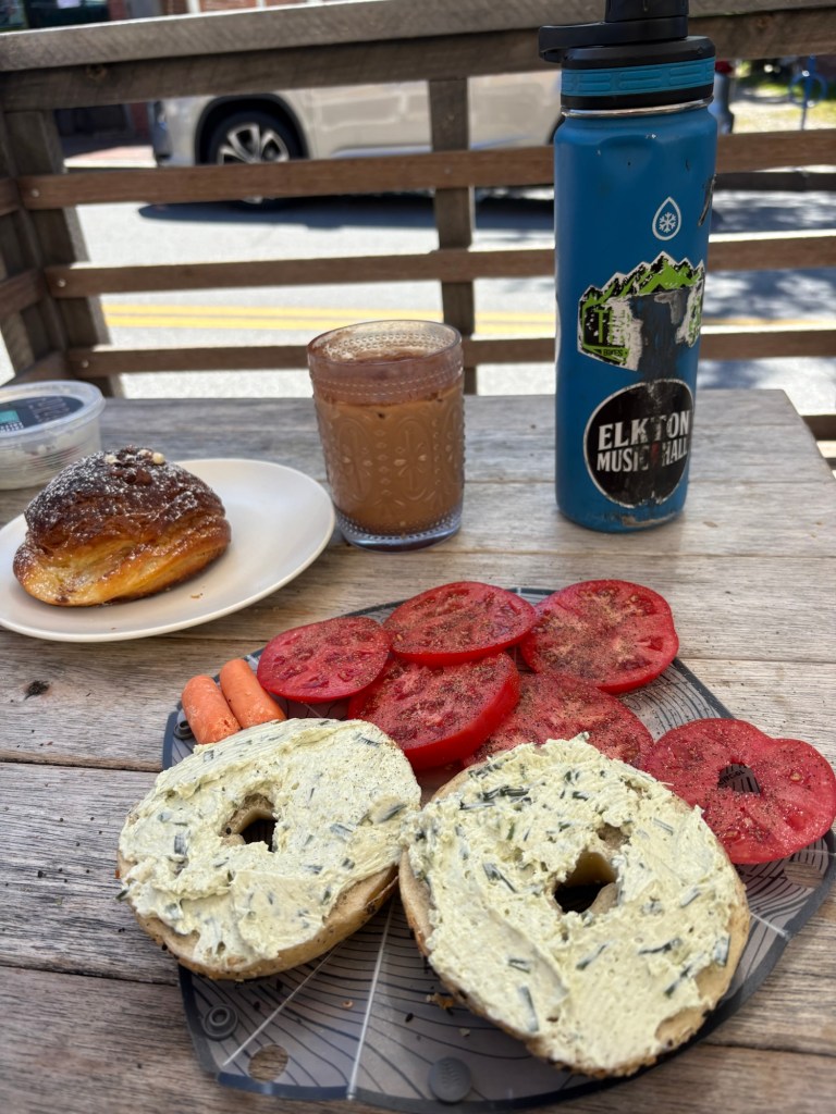 Okay, maybe we get a little respect. Bath was a cool town. It was hard to decide which bakery to patronize but I made a solid choice going to Solo Pane e Paticceria. They were kind enough to let me eat my own lunch at one of their outdoor tables if I bought a pastry and a coffee. I had a sourdough bagel and an excellent free farm stand tomato for lunch.