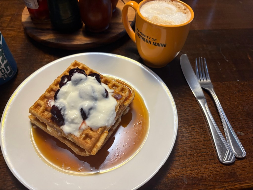 Thomas started my day off right with his waffles and coffee.