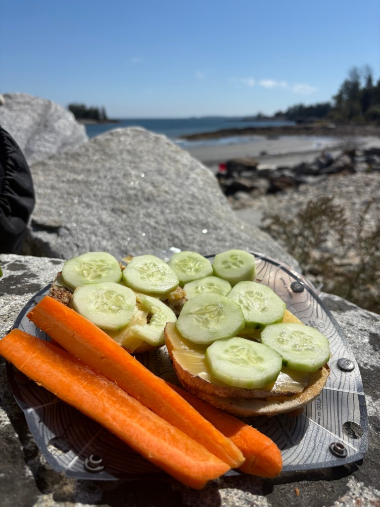 Thomas and Katie I stopped for a cup of coffee and a pastry at Laural’s Dulce Vita in Thomaston. Crescent Beach was where I first caught sight of the Atlantic and I had to stop for lunch and a swim. I had smelled the salt water and caught glimpses of some bays and tidal rivers but this was the first time seeing the ocean. It was magnificent.