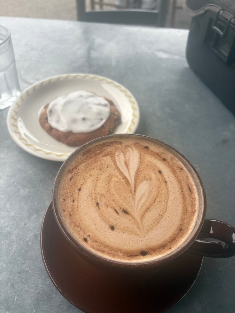 There were some giant oaks tucked in along the roads. I arrived in Belfast and was waiting to hear back from my Warmshowers host, Thumbs, when to show up and what the address was. So I made the most of my time and went to the Belfast Community Co-op for lunch and then crossed the street for a fine coffee and a treat at Chase’s Daily.