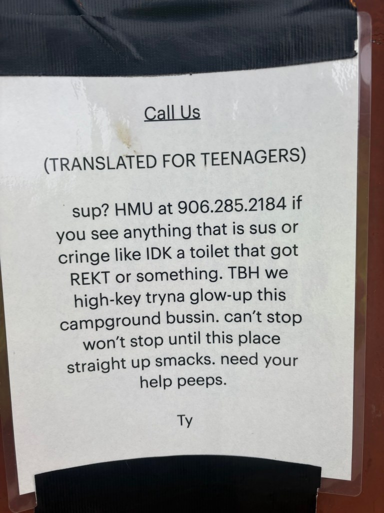 This was on the campground bathhouse (translation below)
