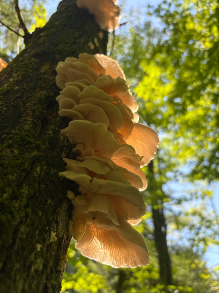 I think these mushrooms are Oyster Mushrooms
