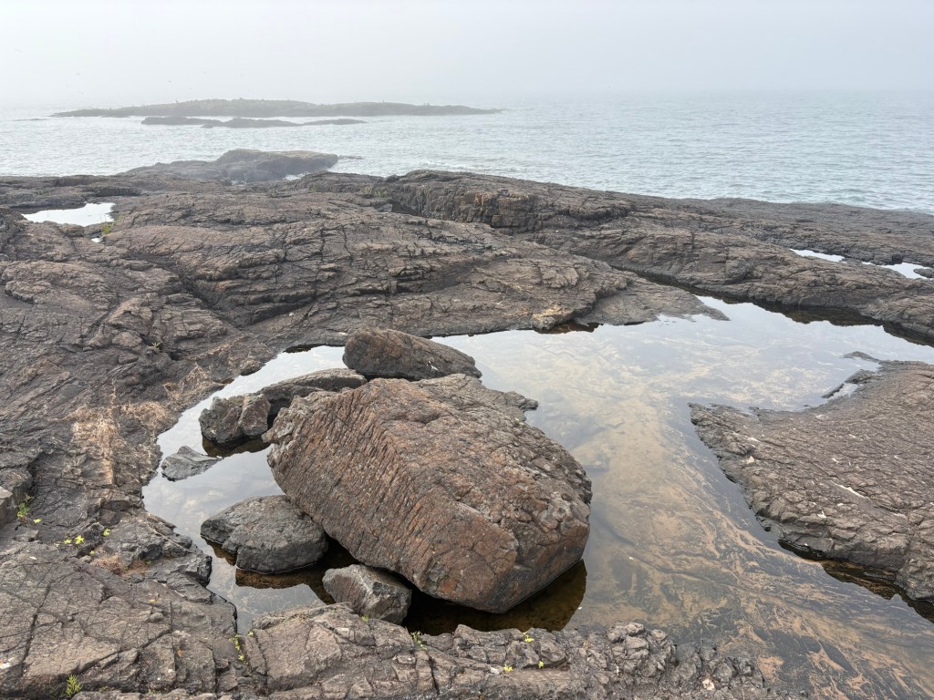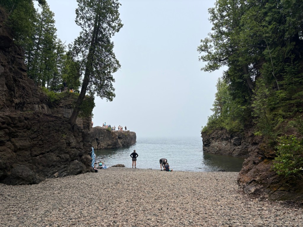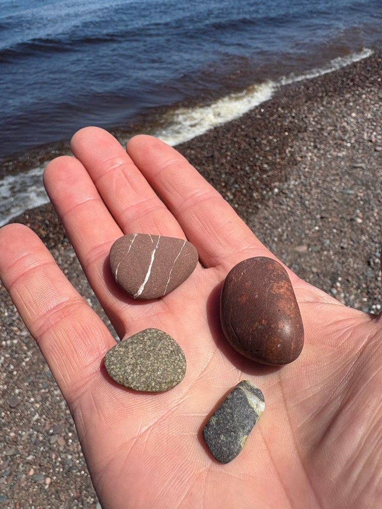 I was coming to Apostle Islands National Lakeshore, it was one of the reasons that I made my route go along the edge of Lake Superior. I had been so focused on the imperatives of covering the miles, finding food, water, shelter and bathrooms that I didn’t look down my route and realize I was getting close to Apostle Islands and I should make a plan to get in some kind of boat to see them. So I was feeling a bit of a failure when I saw the first beach access called Meyer’s Beach. But I could see Lake Superior not too far down the entrance road and decided I should at least go and stick my foot in the water.