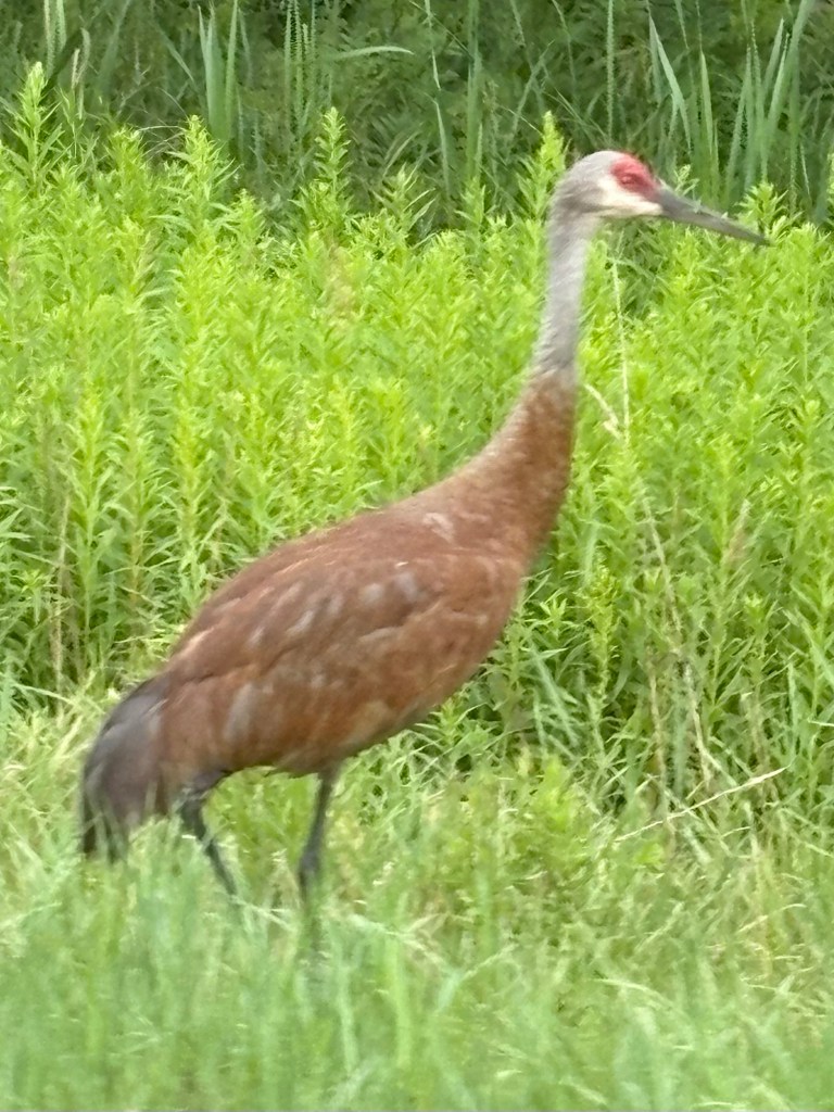 Not too far down the road I came across a sandhill crane that was hunting on the side of the road.