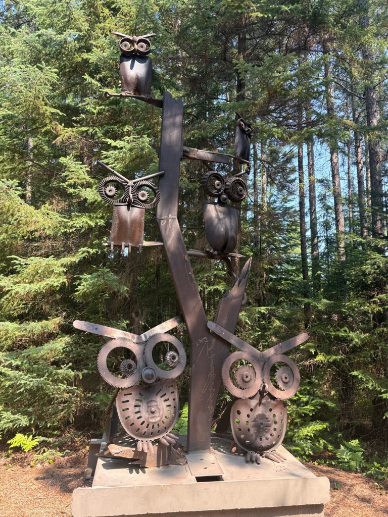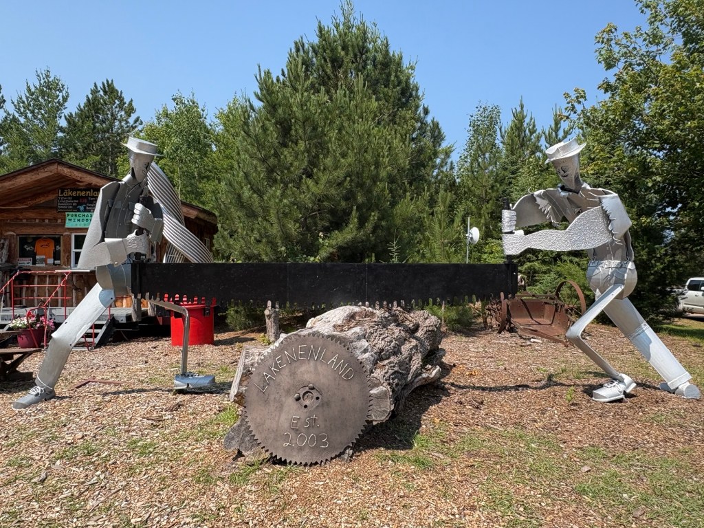 I finally caught just a bit of what my eyes saw in the waters of Lake Superior. Back home when I was planning the route for this trip, I came across a place on Google maps labeled Lakenenland. I remember thinking it would be a cool place to see and it was right on my route. It had dropped off my radar until I saw a sign for it and rode in. It was pretty cool. It is an outdoor sculpture park. I think one guy did most of the sculptures. Obviously he is a talented welder.